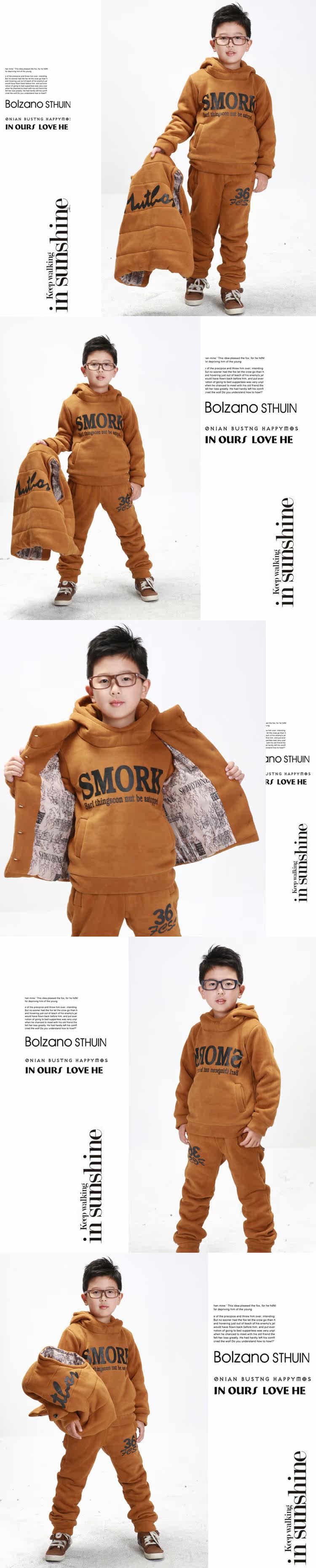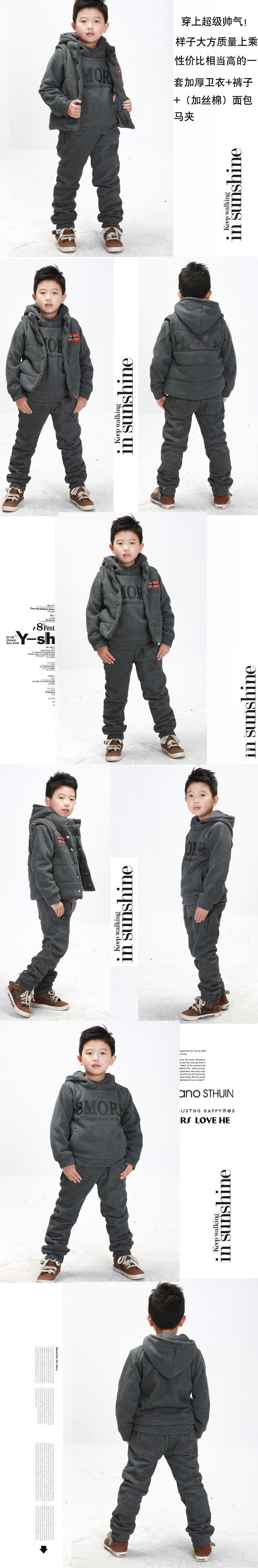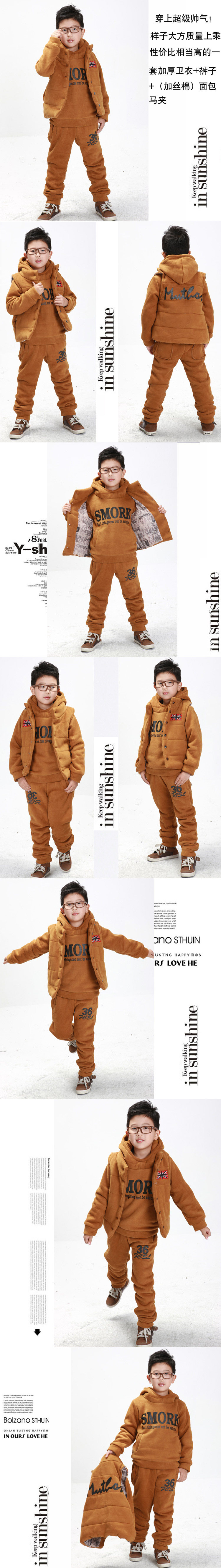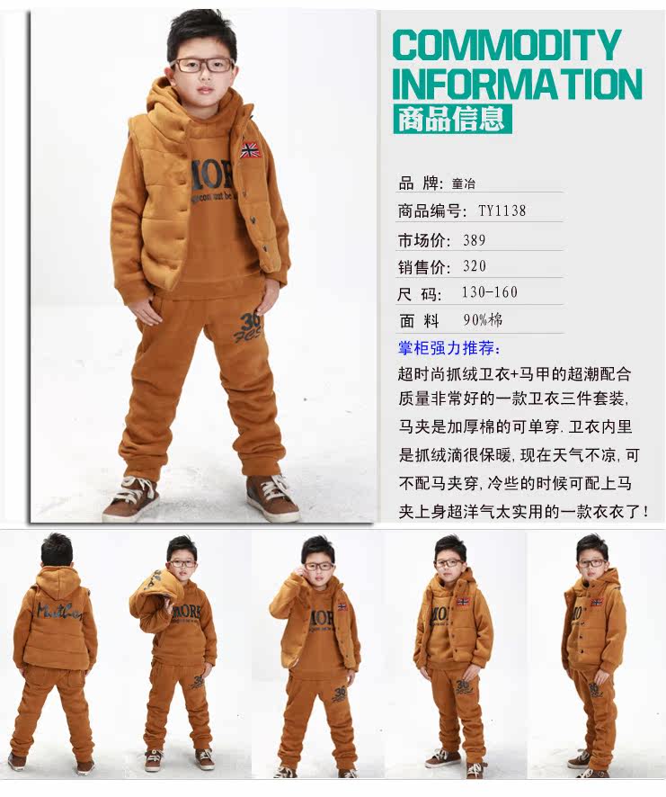 童冶 儿童冬装2011新款套装 中大男童冬装韩版加厚抓绒卫衣三件套